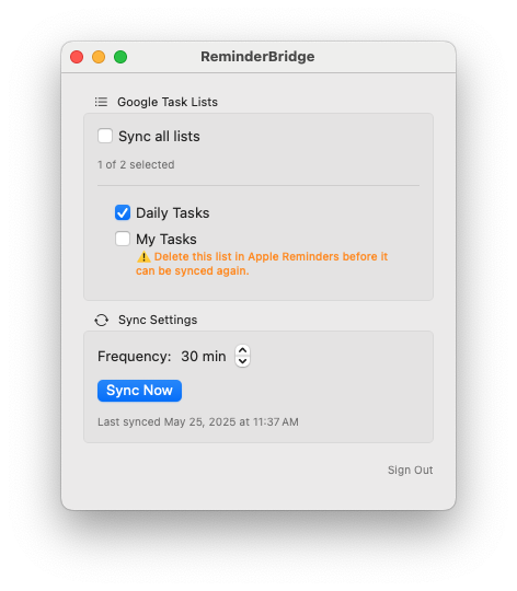 In the meantime, try keeping ReminderBridge open during your work sessionsâor at least hit Sync Now when you start or finish working. That alone can go a long way toward keeping everything in sync.